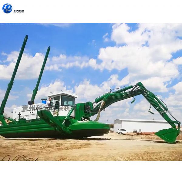 電話:15610293649水王挖泥船在江蘇現(xiàn)場 兩棲式挖泥船設(shè)計緊湊,集反鏟疏浚作業(yè)、絞吸疏浚作業(yè)、打樁作業(yè)能力于一身。適于在超淺水域、河湖、渠道、池塘及工業(yè)沉淀池進行工作
