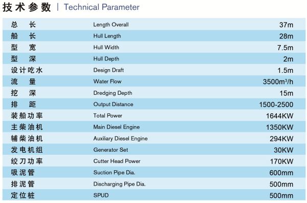 是在疏灘工程中運用較廣泛的一種船舶,它是利用吸水管前端圍繞吸水管裝設(shè)旋轉(zhuǎn)絞頭裝置,將河底泥沙進(jìn)行切割和攪動,再經(jīng)吸泥管將絞起的泥沙物料,借助強大的泵力,輸送到泥沙物料堆積場,它的挖泥、運泥、卸泥等工作過程,可以一次連續(xù)完成,它是一種效率高、成本較低的挖泥船,是良好的水下挖掘機械。