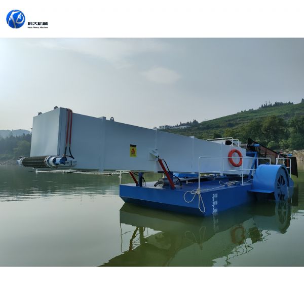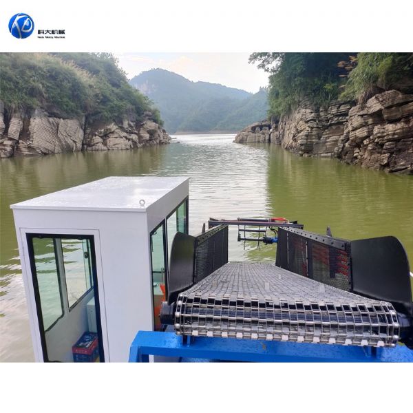 電話:15610293649大型全自動垃圾打撈船在湖南順利下水 該船用于收割打撈水面垃圾、樹枝、塑料瓶、水草等水面漂浮物