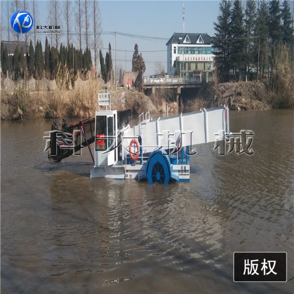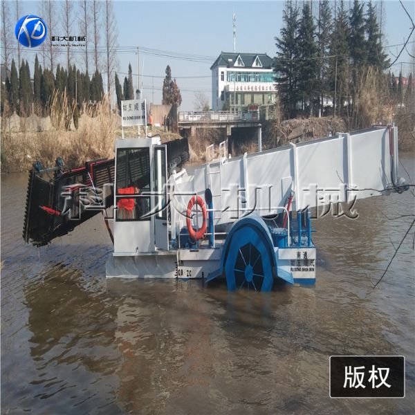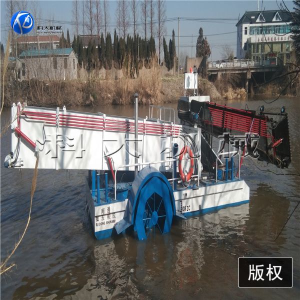 割草船, 是一種集割草、聚攏、打撈、濾水、輸送、卸載等于一體的現(xiàn)代化水草、水葫蘆收割設(shè)備。所有操作程序采用全液壓控制,簡單、方便、靈活,是城市水面景區(qū)的保潔設(shè)備,也可作為垃圾清理船、湖面保潔船均收到良好的效果。